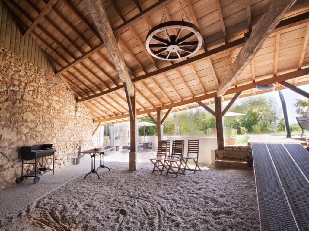 Un salon de jardin est disponible pour les apéritifs ou les repas au grand air. Sous l’auvent vous y trouverez une table de ping-pong mais aussi des accessoires de jeux pour la piscine.