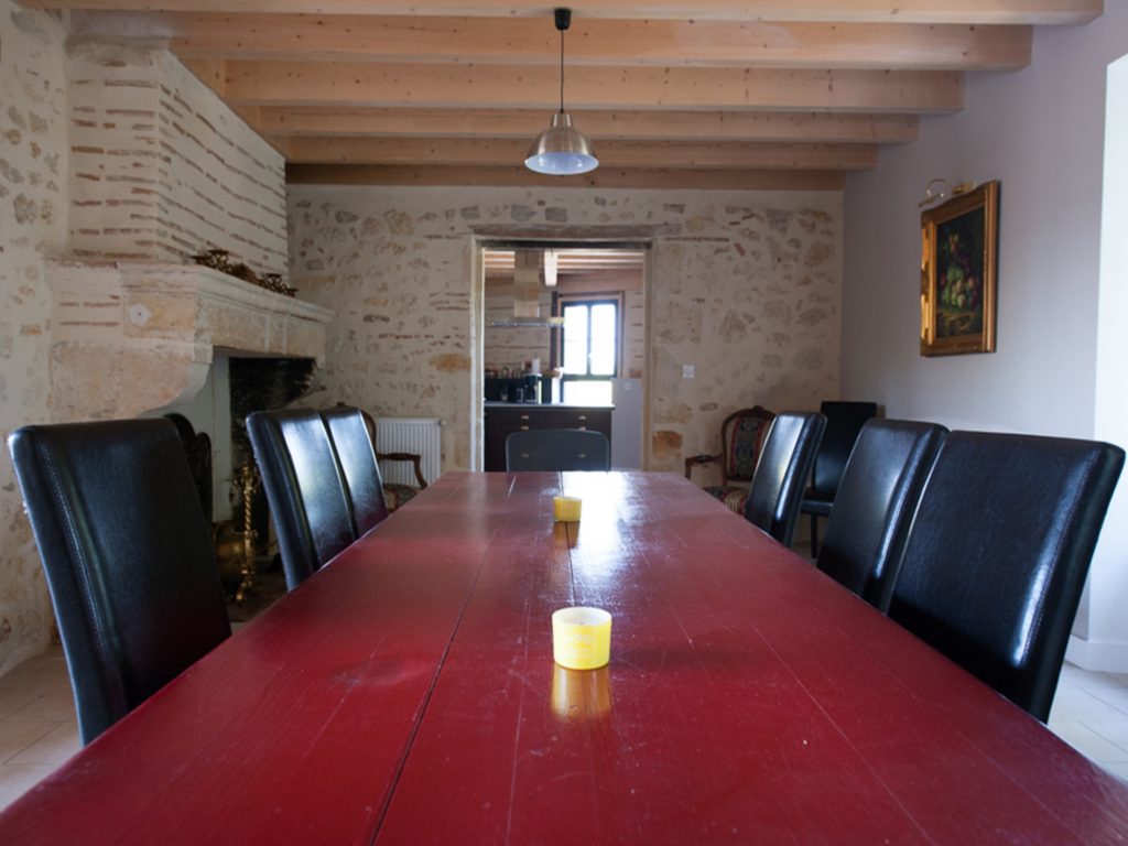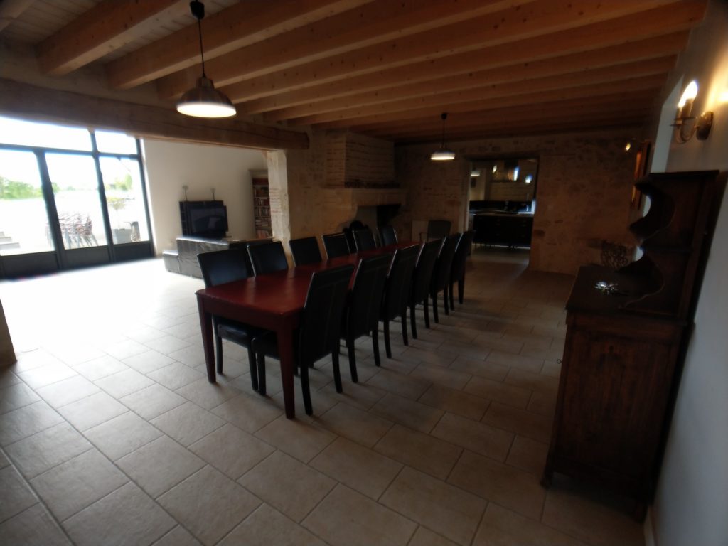 Attenante à la cuisine se trouve la salle à manger qui convient parfaitement pour les grandes tablées ! La table peut accueillir jusqu’à 12 personnes. Donc pour 13 personnes ou plus il suffit d’y accoler une seconde table console disponible dans le salon.