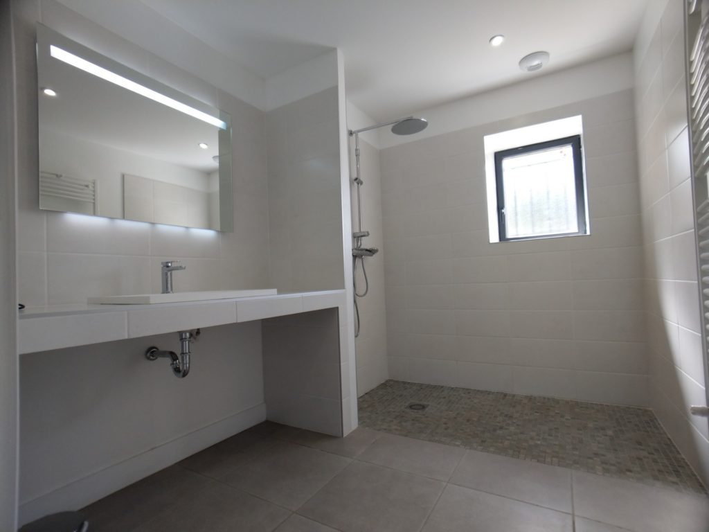 La maison dispose de 5 chambres. Tout d’abord la première se situe au rez-de-chaussée (1×140 et 1×90) avec salle d’eau attenante et toilette séparé, conçus pour être accessibles aux personnes à mobilité réduite.